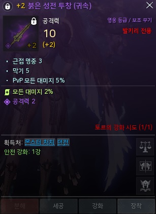 (붉은 성전 보조무기는 절대자 오딘에서 드롭되는 아이템입니다.)