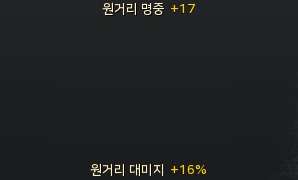10~100다이아대 아이템들을 구매해 원거리 명중 17, 원거리 데미지 16을 올려 주었습니다.