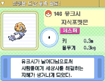 저는 아그놈, 유크시, 엠라이트와 왕눈해(...!!!)가 도감에 없습니다.