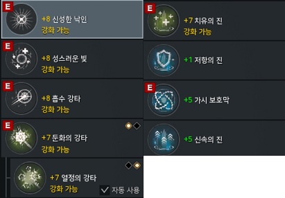 (별빛의 노래는 힐스킬을 빼고 넣으면 된다고 합니다.)