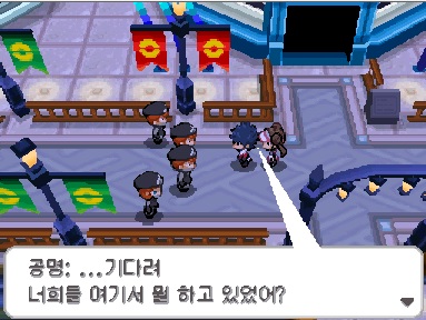 다시 뇌문시티로 돌아오면 라이벌이 플라즈마단과 대치하고 있습니다.