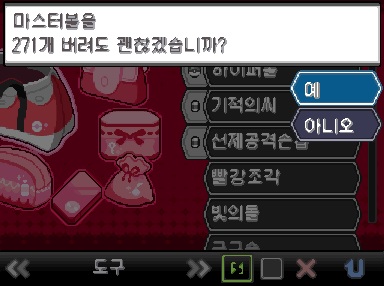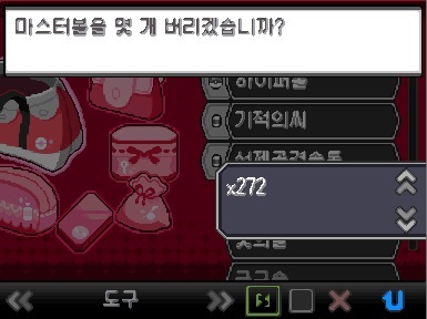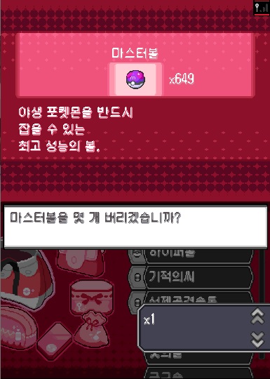 치트 입력후 L키와 R키를 누르면 가방에 마스터볼 649개, 울트라볼 100개가 생깁니다.