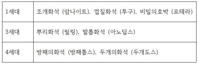 덮개화석은 늑골라, 날개와석은 아케오스입니다.
