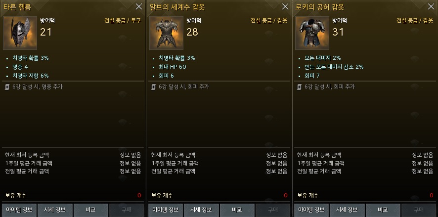 타른 헬름과 알브의 세계수 갑옷은 5만, 로키 갑옷은 6만~정도에 구매할 수 있습니다.