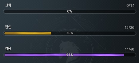 영웅 349회, 전설 87회, 신화 3회를 도전했습니다.