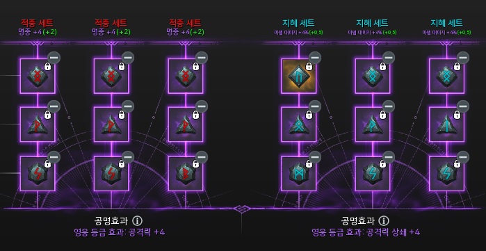 명중 8결속 / 공격력 4결속 / 공격력 상쇄 6결속을 사용중입니다.