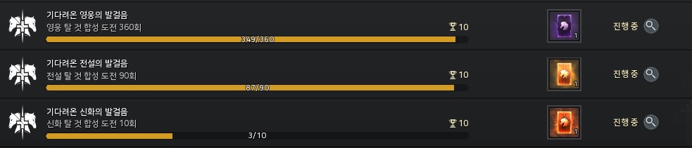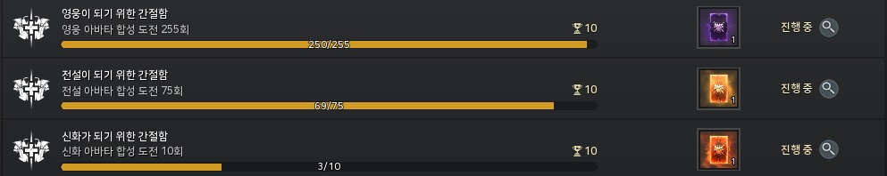 영웅 250회, 전설 69회, 신화 3회를 도전했습니다.