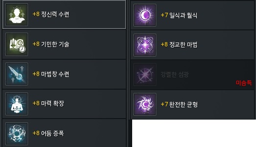 세트 강화는 적중 4 / 지혜 1, 적중 2 / 예리 5입니다.