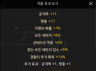 공격력 8, 명중 24 각인 특화입니다.