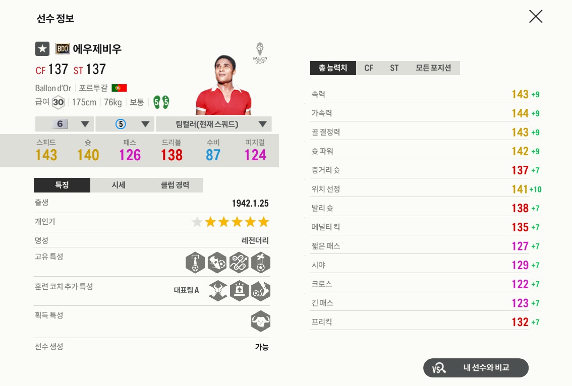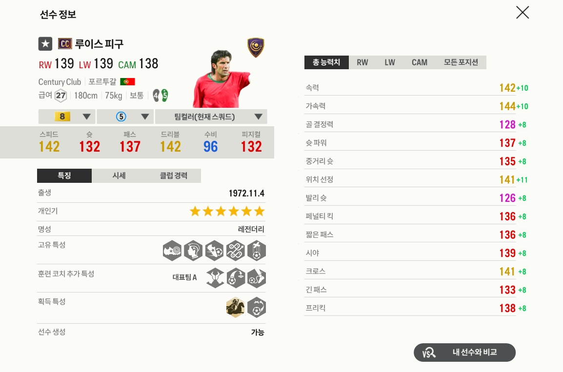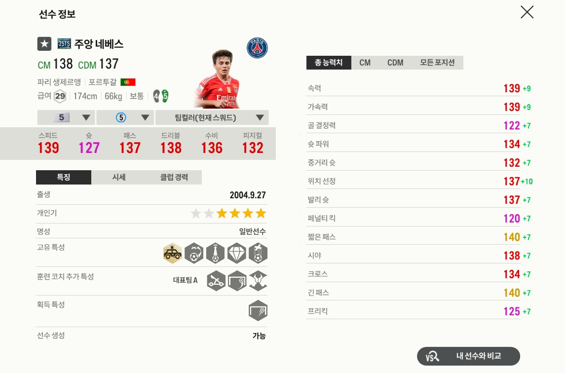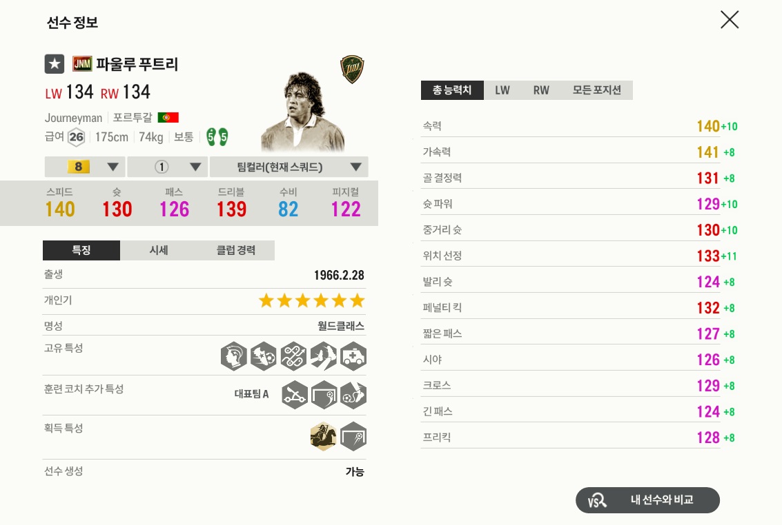 다른 능력치는 쏘쏘지만 양발에 빠른 속도는 마음에 듭니다.