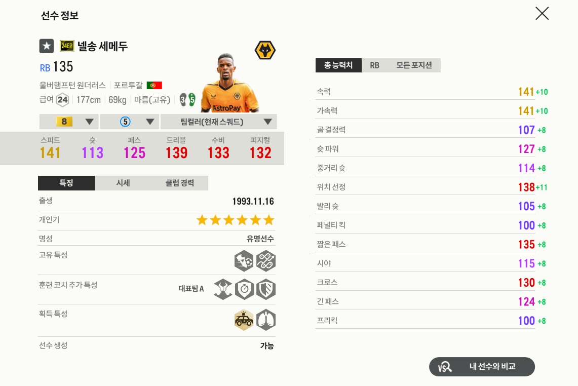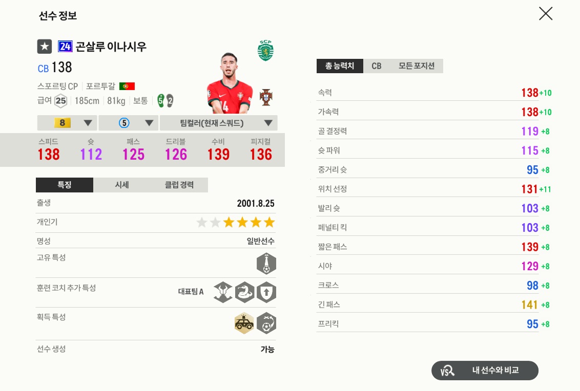 돈을 모아 누누 멘데스로 업글해줄 생각입니다.