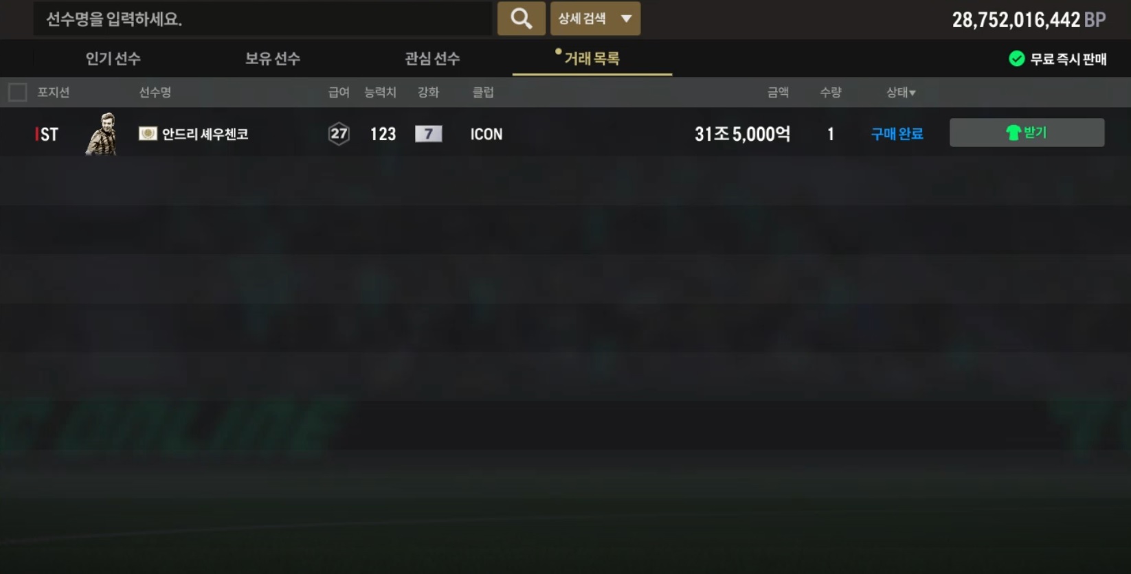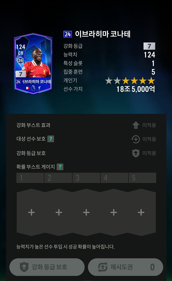 챔스 코나테 7카가 붙어주어 구단 성장의 발판을 마련할 수 있었습니다.