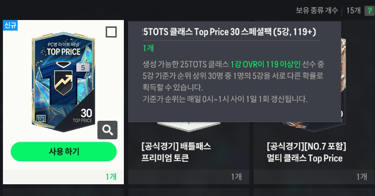 여름 피시방 버닝에서 25토츠 은카팩을 획득했습니다.