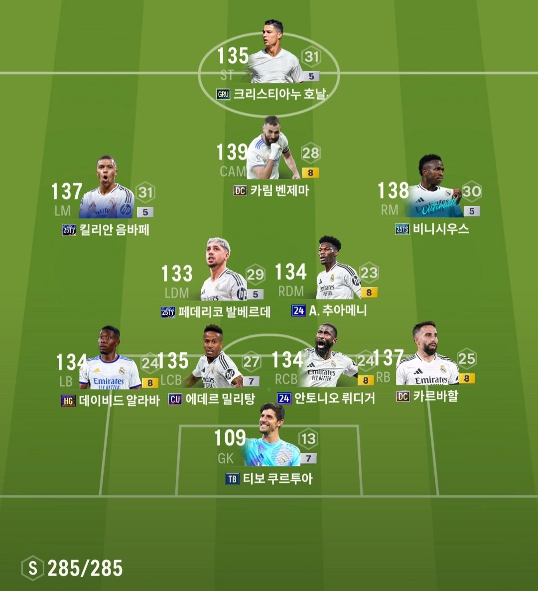 임대 호날두와 강화로 획득한 선수들로 팀을 구성했습니다.