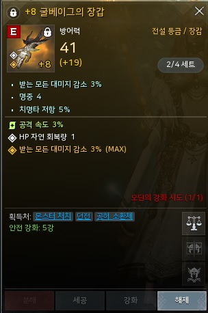 멘탈이 심하게 나가서 본장비를 강화했습니다.