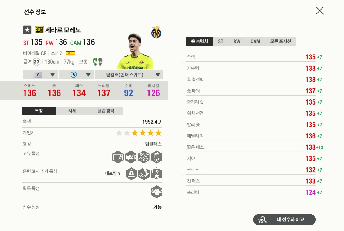 다만 몸이 조금 약해 원톱은 무리고, 공미나 투톱이 최적의 자리라 생각합니다.