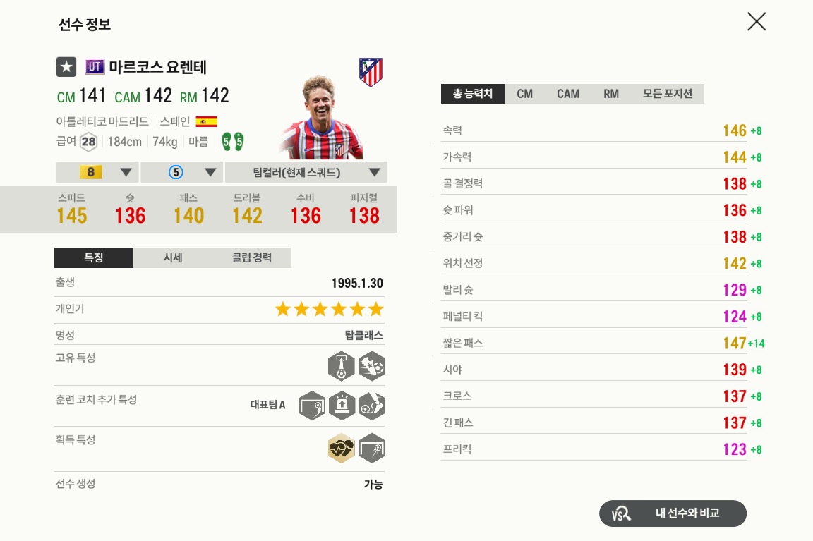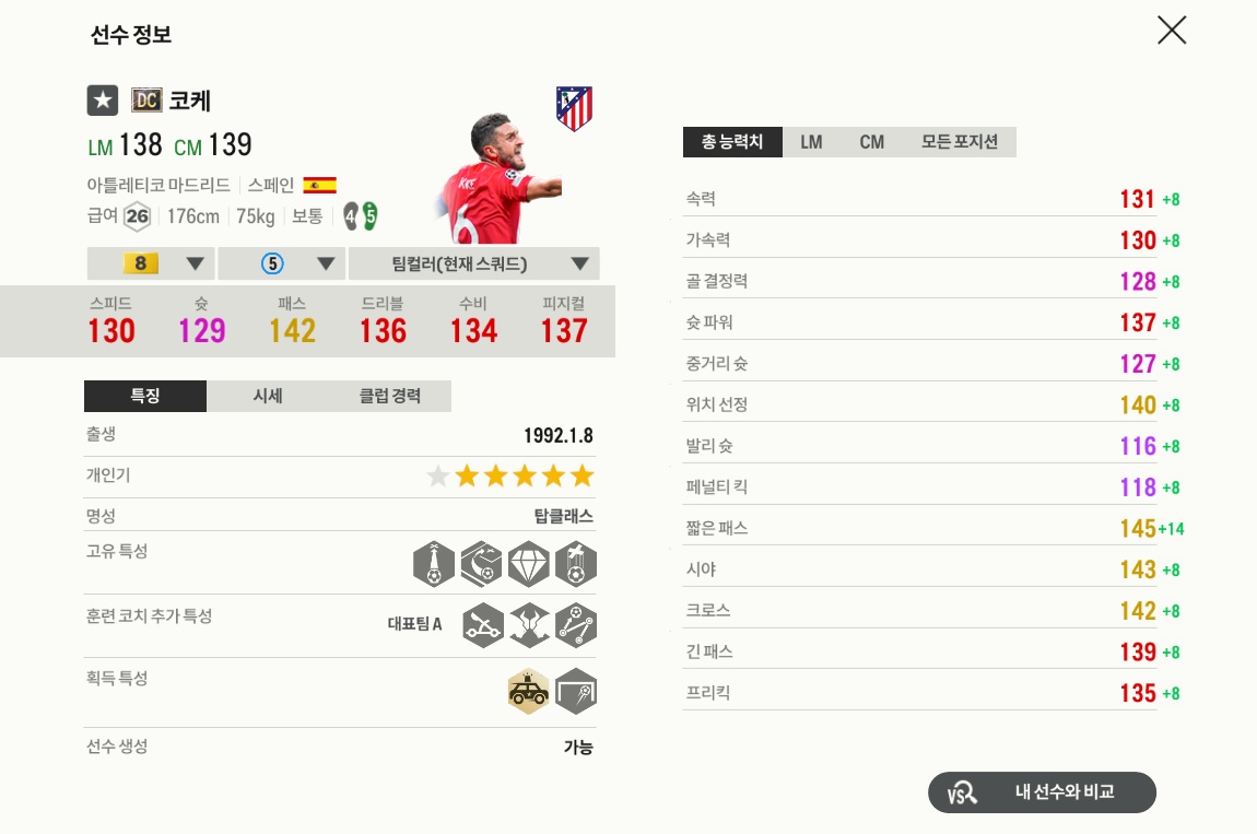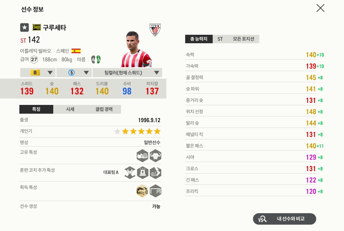 오버롤이 140이 넘으면 1티어 선수와 크게 차이가 나지 않는다는 이론입니다.