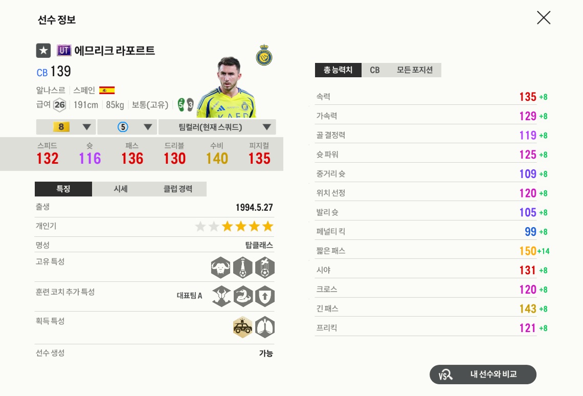 역시 가성비있게 높은 오버롤을 사용하기 좋은 선수입니다.